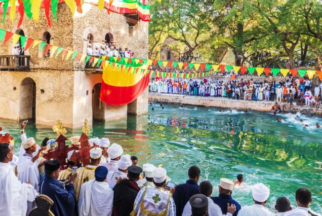 Epiphanies(Timkat) Festival the Ethiopian Orthodox equivalent to Epiphany, is celebrated at churches throughout the country on January 19. The best place to be during Timkat is Gondar, where the festivities culminate in a crowded and colorful afternoon re-enactment of the first baptism at the 17th century Fasil’s Pool, which is filled with water for the occasion.